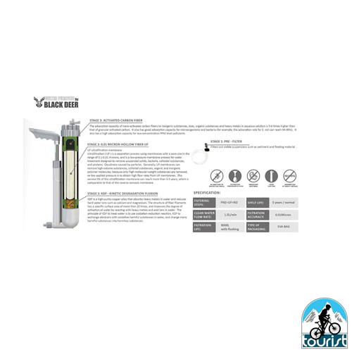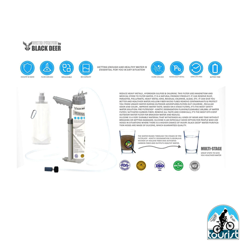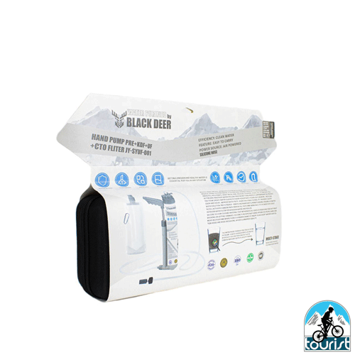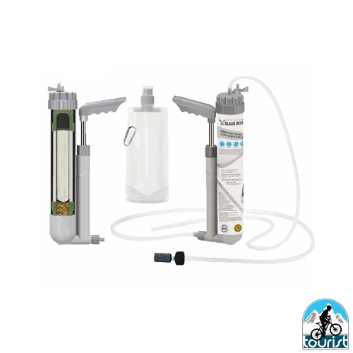 پمپ دستی تصفیه آب بلک دیر مدل 4 مرحله ای کد JY-SYUF-001 محصولی کاربردی است که نا خالصی ها و آلودگی های آب را گرفته و فیلتر میکند تا آب تصفیه شده و سالم در شرایط اضطراری در دسترس افراد باشد.